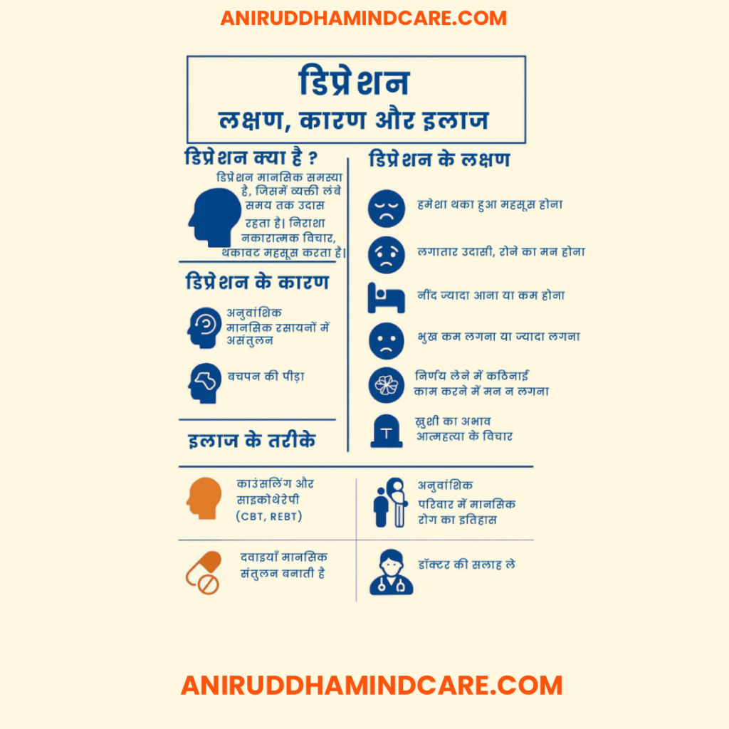 - आत्महत्या के विचार – गंभीर डिप्रेशन में ऐसे खतरनाक विचार भी आ सकते हैं।