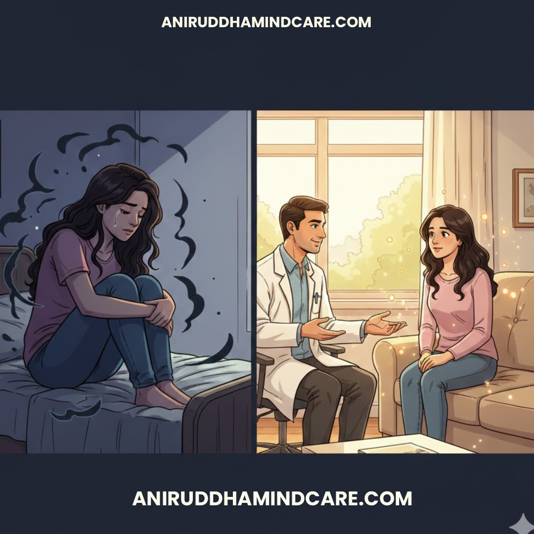 - साइकोथेरेपी (Psychotherapy) – इसमें मरीज और प्रशिक्षित काउंसलर या मनोचिकित्सक बात करके समस्या की जड़ तक पहुँचते हैं।
